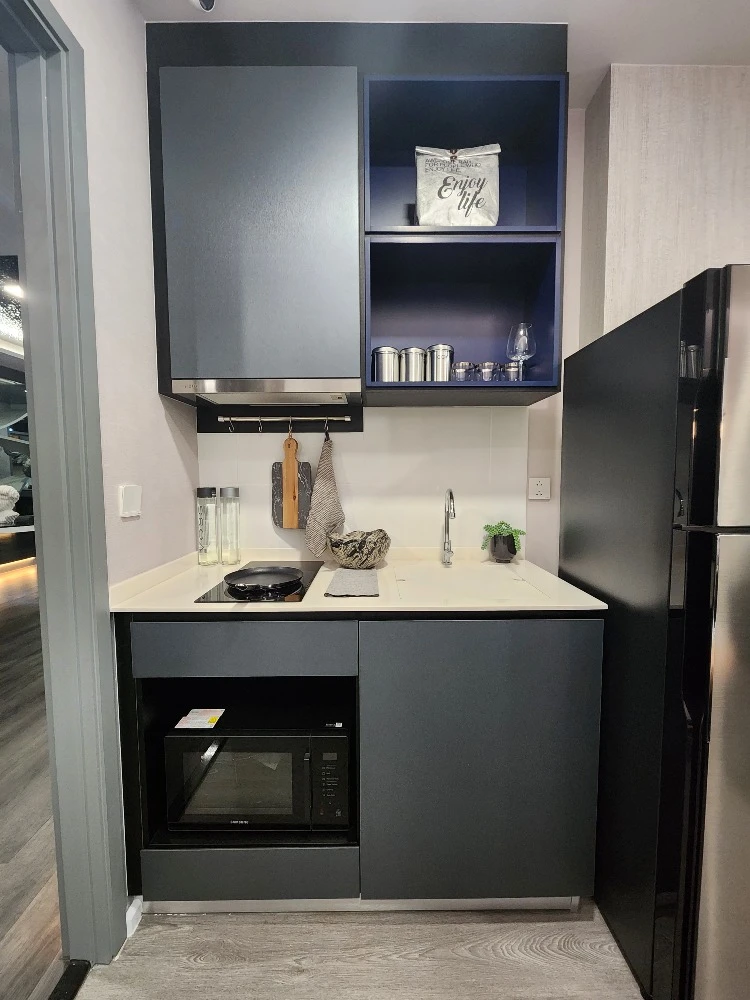 Modiz Avantgarde 1 ห้องนอน 1 ห้องน้ำ ขนาด 26.8 ตรม. ชั้น 16 ตำแหน่ง 17 ห้อง 1617 Fully Fitted มีแอร์ เคาน์เตอร์ครัว เตาไฟฟ้า เครื่องดูดควัน กระจกกั้นอาบน้ำ และ Digital door lock ให้ แต่ไม่รวมเฟอร์นิเจอร์ |