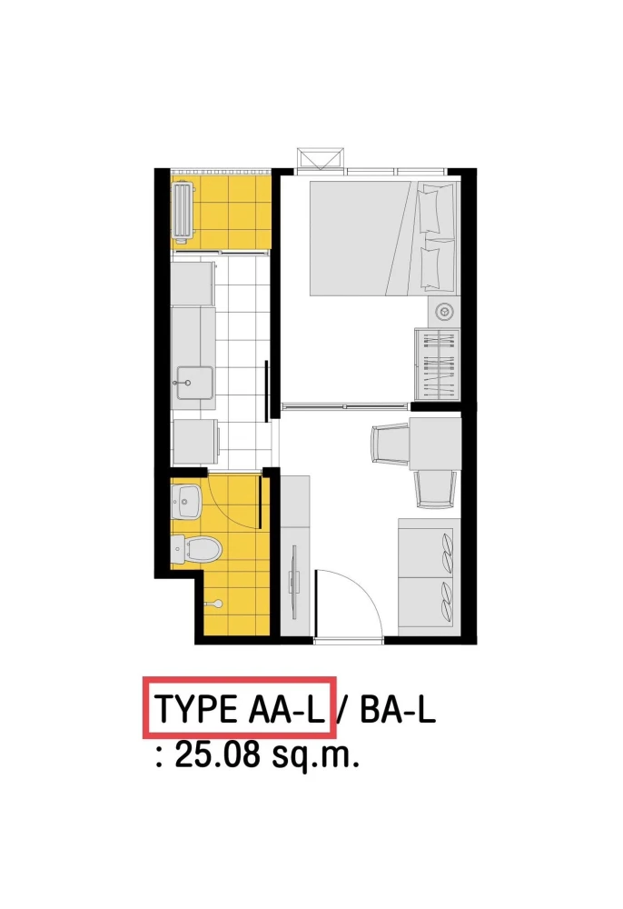 | ลักษณะห้อง | สตูดิโอ: 22.4 - 23.7 ตร.ม. 1 ห้องนอน: 26.3 - 34.8 ตร.ม. 2 ห้องนอน: 48.8 - 49.5 ตร.ม.