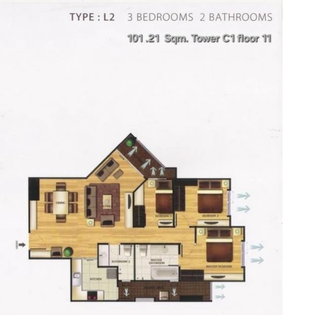 ขาย คอนโด เบ็ล แกรนด์ พระราม 9 3 ห้องนอน 2 ห้องน้ำ ชั้น 11 ขนาด 101 ตร.ม.