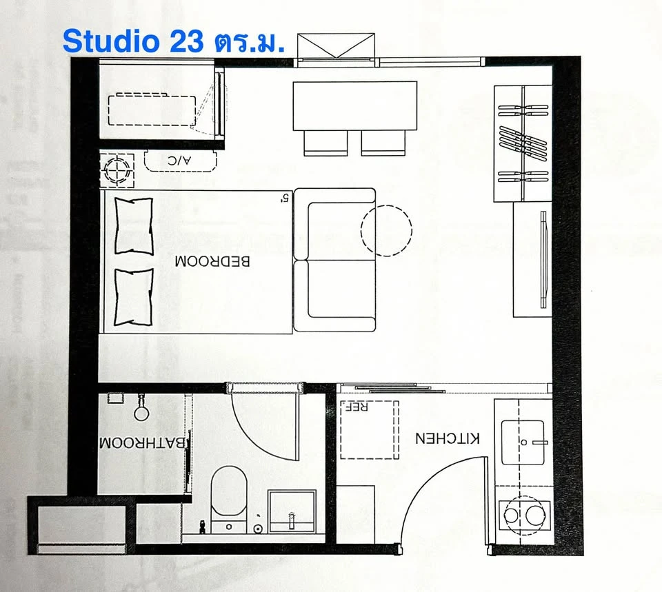 ขนาด 23 ตร.ม. ชั้น24 แปลนห้องมีสัดส่วนดี,