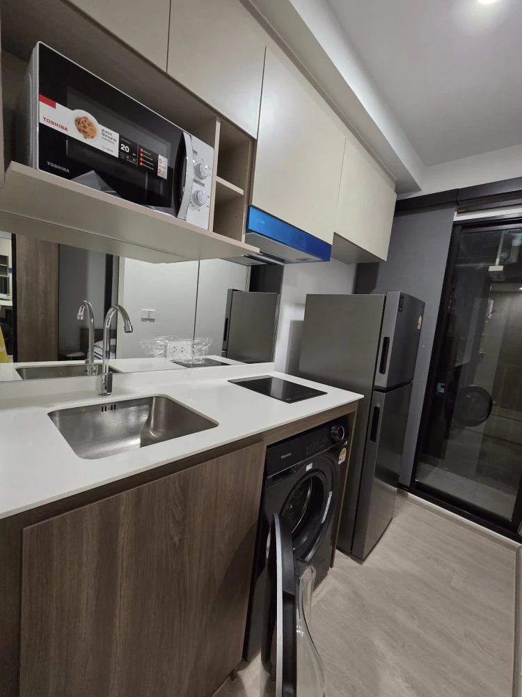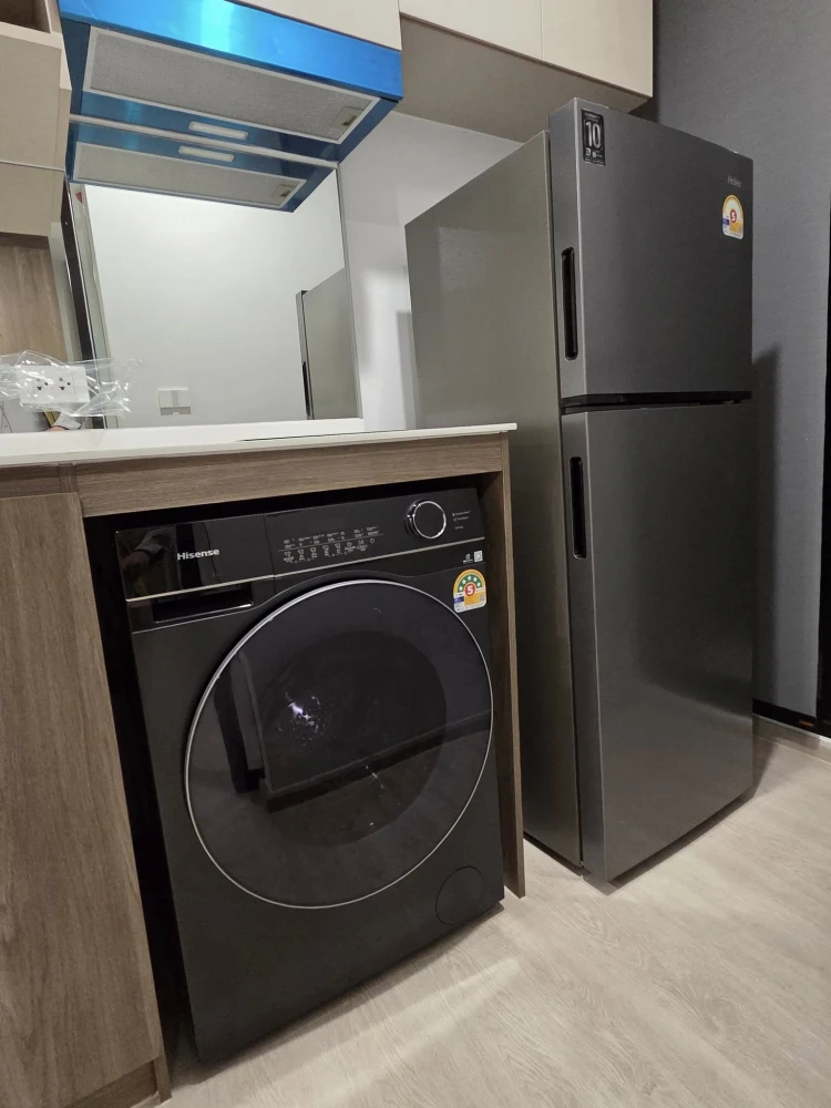 Nue Core Khu Khot Station ห้องเน้นความเป็นส่วนตัว วิวเมือง โปร่ง ไม่มีอาคารบดบัง ห้องอยู่ทางทิศเหนือ คอนโดติดรถไฟฟ้า BTS สถานี คูคต 𝗗𝗲𝘁𝗮𝗶𝗹𝘀 𝗧𝗶𝗽𝗲 1 bed 1 bath 𝗦𝗶𝘇𝗲 23 Sq.m. 𝗕𝘂𝗶𝗹𝗱𝗶𝗻𝗴 : F 𝗙𝗹𝗼𝗼𝗿 : 8 เฟอร์นิเจอร์และเครื่องใช้ไฟฟ้าครบ เครื่องใช้ไฟฟ้าครบ •แอร์ 1 เครื่ิอง •ทีวี smart Tv •เครื่องทำน้ำอุ่น •ไมโครเวฟ •เครื่องซักผ้าฝาหน้า (ปั่นหมาด-อบแห้งในตัว) •ตู้เย็น •เตาไฟฟ้าและที่ดูดควัน •ประตูห้องระบบ Digital Lock |