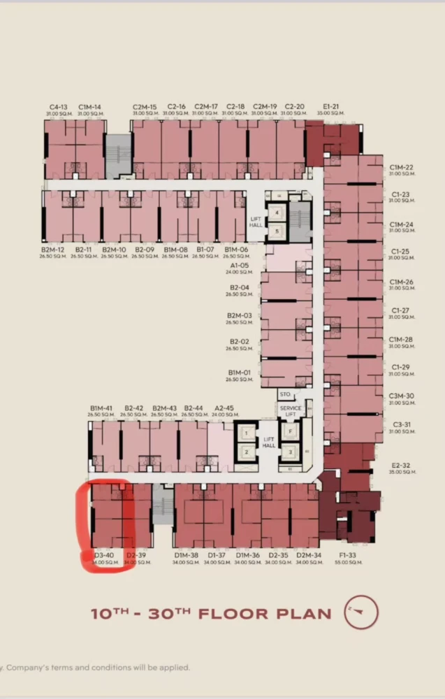 | ลักษณะห้อง | สตูดิโอ: 24.50 - 26.50 ตร.ม. 1 ห้องนอน: 30.00 - 34.50 ตร.ม. 1 ห้องนอนพลัส: 35.00 - 40.00 ตร.ม. 2 ห้องนอน: 45.00 - 59.50 ตร.ม. ดูเพล็กซ์: 30.00 - 59.50 ตร.ม. |