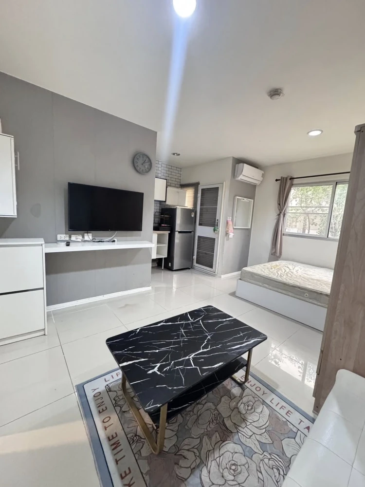 Lumpini Township Rangsit Klong 1 เฟอร์นิเจอร์ตามรูปครับ ทีวี ตู้เย็น แอร์ ตู้เสื้อผ้าและอีกหลายๆอย่างครับ ตึก B4 อยู่ชั้น1 ห้องเย็นสบาย |
