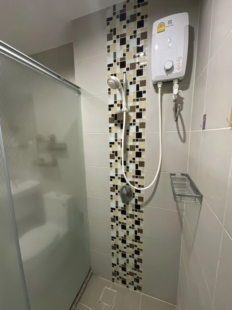 - ห้องน้ำ เครื่องทำน้ำอุ่น + ห้องกั้นกระจกเป็นสัดส่วน